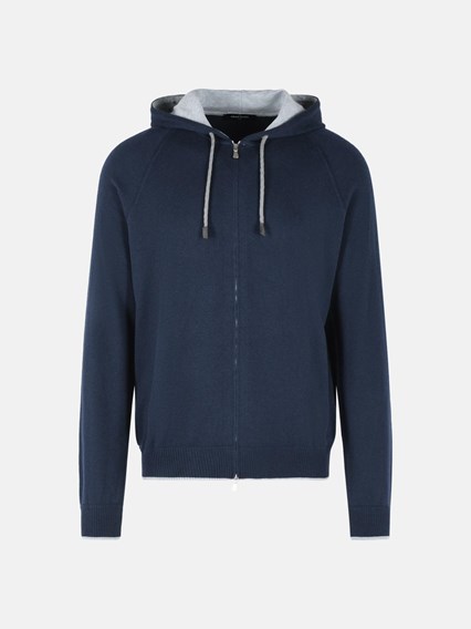 BLUE COTTON AND CASHMERE SWEATER