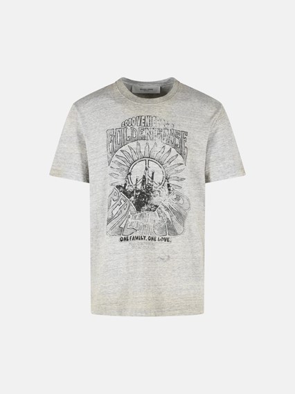 Regular fit, worn-out treatment with lived effect, watercolor effect 'Peace and Unity' print on the chest, double star on the back