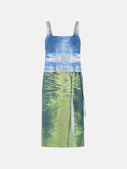KLEID "SANAT" AUS BLAUER UND GRÜNER BAUMWOLLMISCHUNG