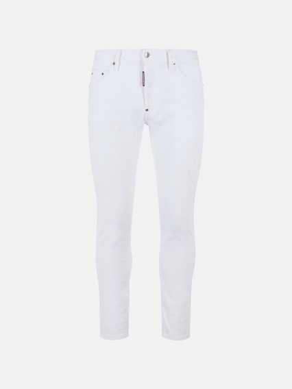 Aus Stretch-Baumwoll-Denim, verdeckter Knopfverschluss, Five-Pocket-Stil, Rückenaufnäher mit geprägtem Logo