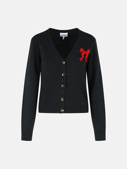 V-neck, front button closure, red bow embroidered logo on the chest, maxi back motif with logo and bunny, ribbed hem and cuffs