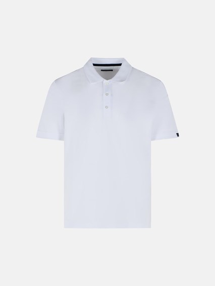 Gerippter Polokragen, teilweiser Knopfverschluss, fertige Bündchen mit Etikett, gerader Saum mit Seitenschlitzen, Regular Fit