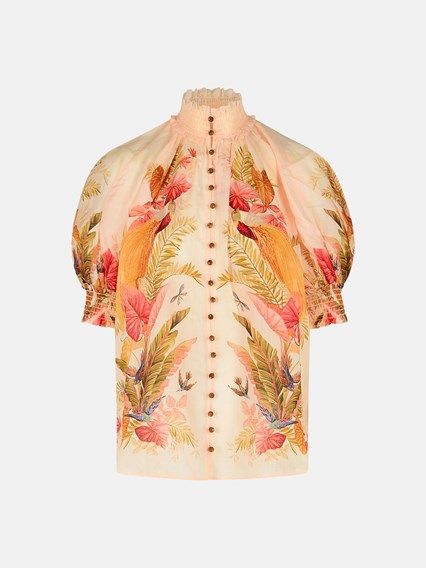 'BILLOW' RAMIE PUFF SLEEVES BLOUSE IN 'CREAM PALM FLORAL'