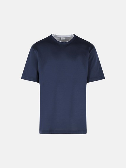 Double layer effect at the edges, ribbed crew neck, small details with side stitching