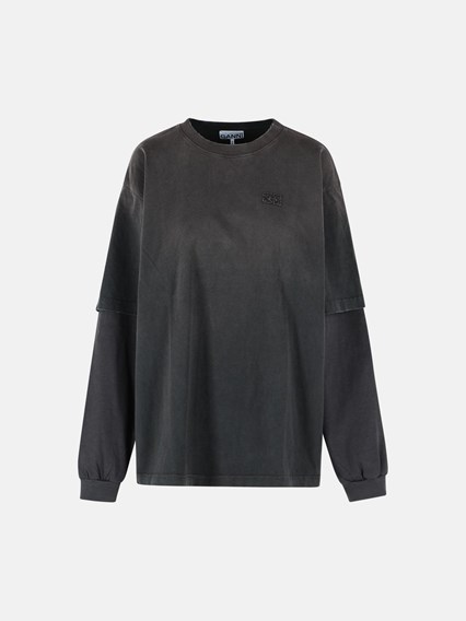 Ribbed crew neck, tonal logo appliqué on the chest, long sleeves with ribbed cuffs, washed and distressed effect