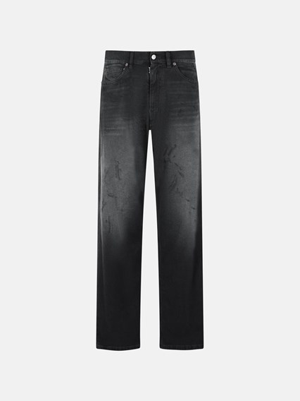Washed effect, belt loops, five-pocket hidden zip and button closure, iconic white stitching on the back