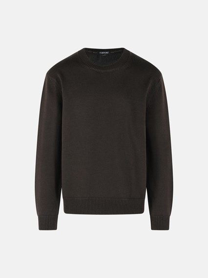 BROWN COTTON AND SILK SWEATER