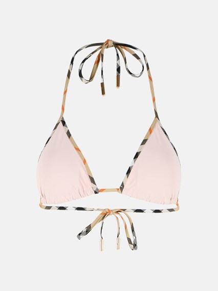 Bikini top with stretch nylon laces, 'Burberry Check' trims, bittite cups