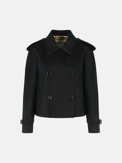 BLACK COTTON GABARDINE TRENCH COAT JACKET