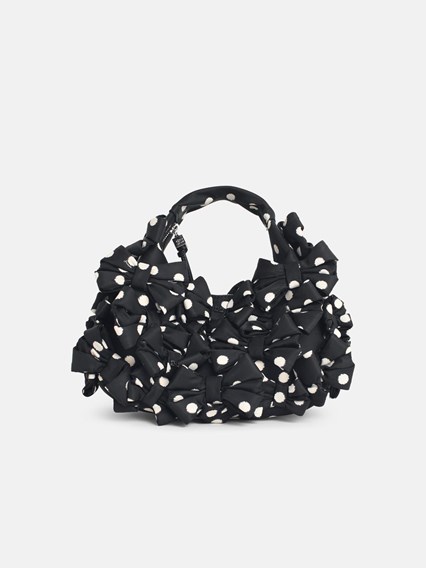 Contrasting polka dot texture, all-over bow application, adjustable and removable shoulder strap, fixed handle, zip closure, inner flat pocket\n28 x 13 x 12 cm