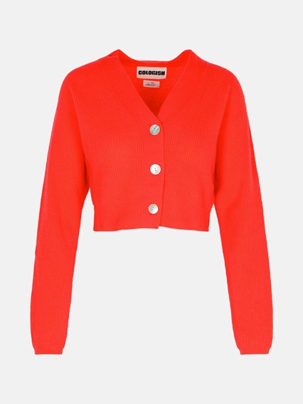 Crop cut, 'V' neckline, central closure with tone-on-tone buttons, cuffs and hem