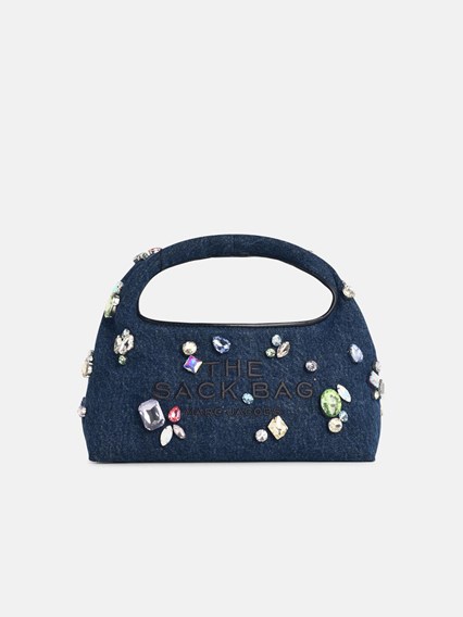 Made of denim, gem decorations, magnetic closure, removable clutch bag with zip, black embroidered front logo \ 22 x 14 x 11 cm