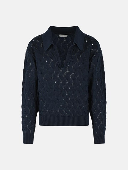 Wide collar, front opening, knitted with abstract pattern, ribbed hem and cuffs