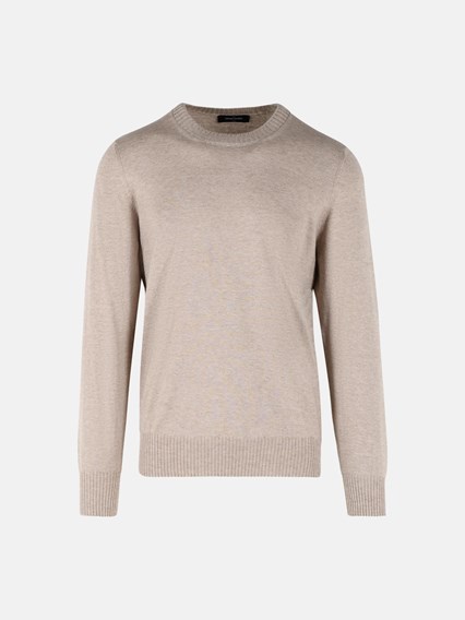 BEIGE COTTON AND CASHMERE SWEATER
