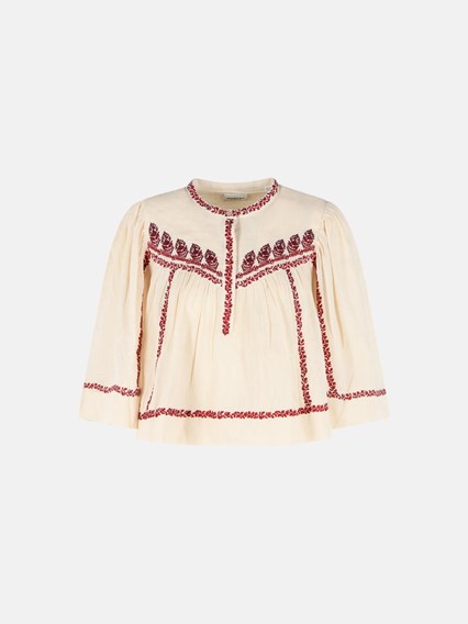 'JULINE' BEIGE AND RED COTTON BLOUSE