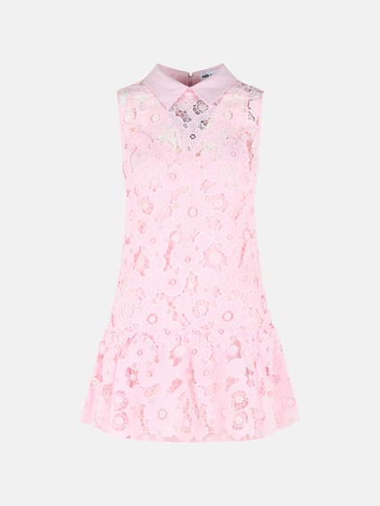 Made of lace, pointed collar, back closure with invisible zip, floral pattern, tonal petticoat