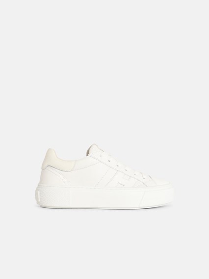 Made of smooth leather, flat toned laces, side H insert, logo label on the tongue, grainy leather heel, padded collar, rubber sole