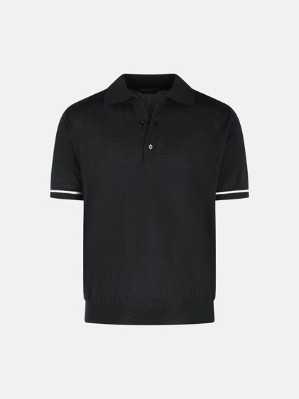 Ribbed collar, partial button closure, contrast detail cuffs, ribbed hem