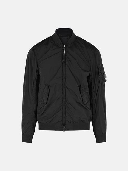 Knitted collar, front zip closure, front pockets with snap button, lens on the sleeve