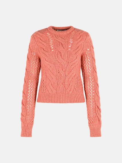 MAGLIA GIROCOLLO CON TRECCE 'RADIO' IN MISTO LANA ROSA
