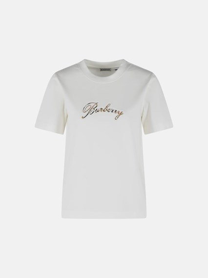 Girocollo a costine, patch logo in 'Burberry Check' applicata sul davanti