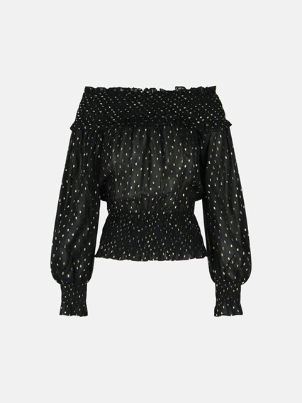 Realizzata in viscosa con dettagli in fibra metallica, orlo e polsi elasticizzati
