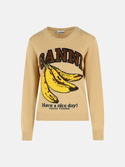 Girocollo a costine, motivo frontale banane e logo a contrasto, orlo e polsi a costine, vestibilità regolare