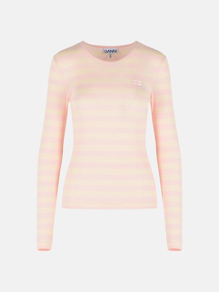 Girocollo a costine, motivo a righe orizzontali, logo ricamato a tono sul petto, vestibilità aderente