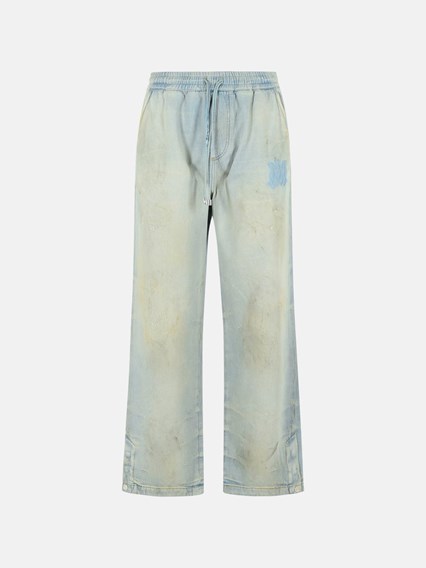 Vestibilità 'baggy' rilassata, vita elasticizzata con coulisse, effetto vintage, tasche laterali a fessura tasche posteriori applicate, patch a tono con logo frontale, apertura sull'orlo con bottoni