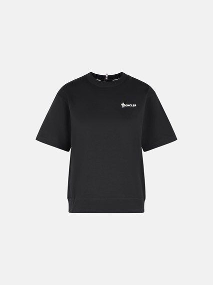 Girocollo a costine, logo a contrasto sul petto, dettagli con cuciture a vista laterali e sul fondo, iconica patch logata sulla manica