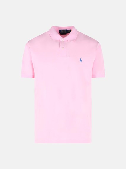 Colletto classico a costine, chiusura parziale a bottoni, logo azzurro ricamato sul petto, fondo manica rifinito a costine, orlo con spacchi laterali leggermente più lungo sul retro