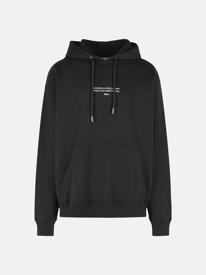 Cappuccio con coulisse, stampa frontale a contrasto, tasca a marsupio, orlo e polsi a costine, piccoli spacchi laterali