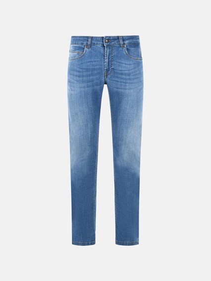 Vita con passanti, chiusura con bottone e zip, modello a cinque tasche, patch posteriore con logo impresso
