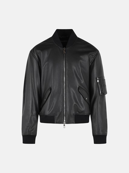 Realizzata in pelle di capra, collo rialzato rifinito a costine, chiusura con zip, tasche oblique con patta e bottone automatico, tasca con zip sulla manica, iconica targhetta metallica con logo applicata sul retro, orlo e polsi a costine, due tasche interne con zip, capo foderato