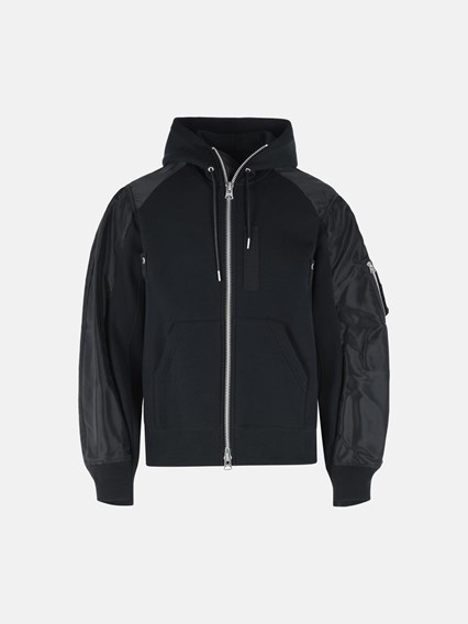 Cappuccio con coulisse, chiusura con zip, dettagli in gros grain, tasca a marsupio, tasca con zip sulla manica, orlo e polsi a costine
